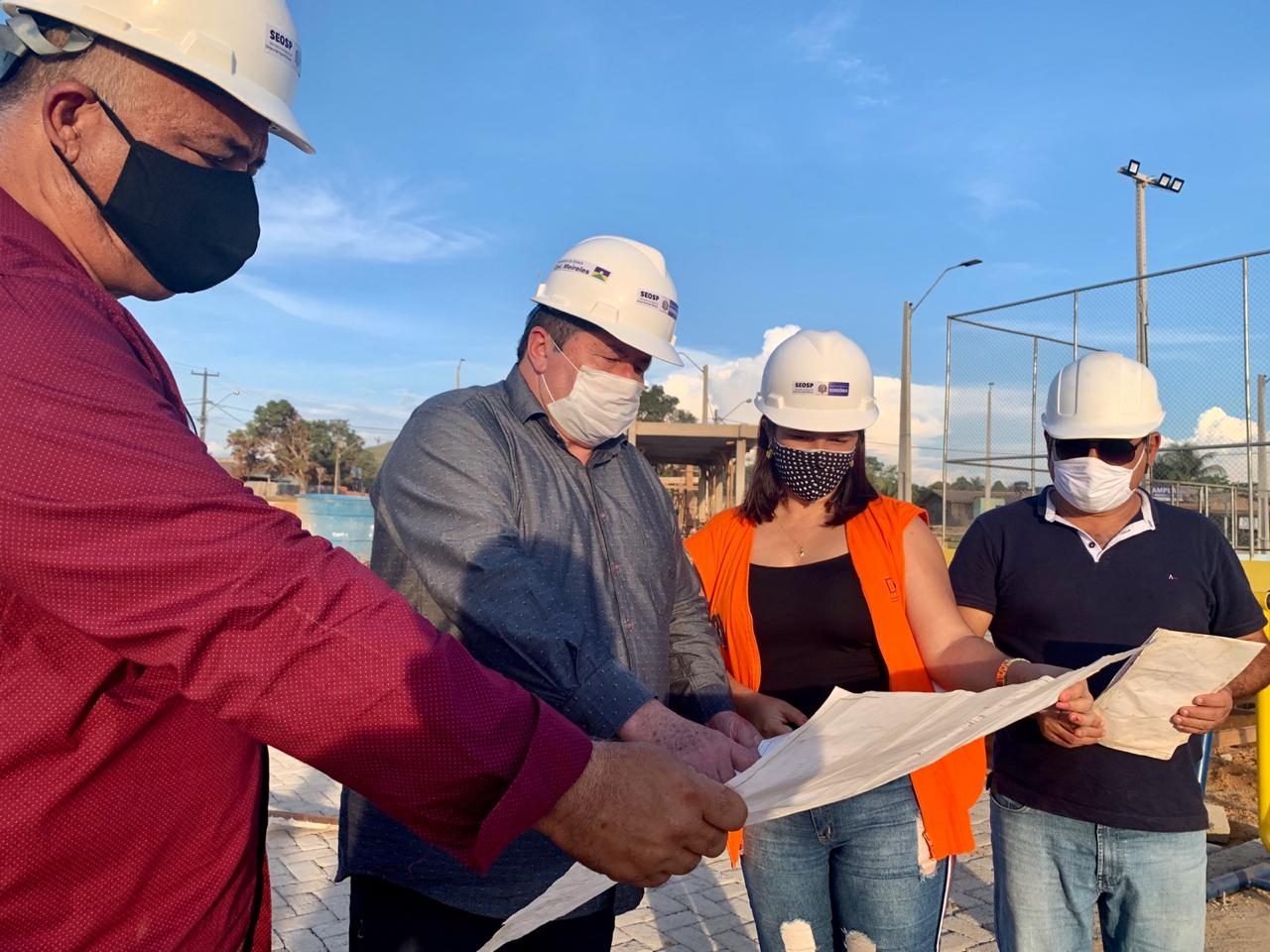 Secretário Meireles e equipe inspecionam obra de praça